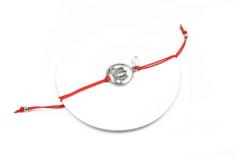 • Bratara este formata din snur textil rosu reglabil cu charm argintiu floare . Dimensiune charm de aprox. 20mm.