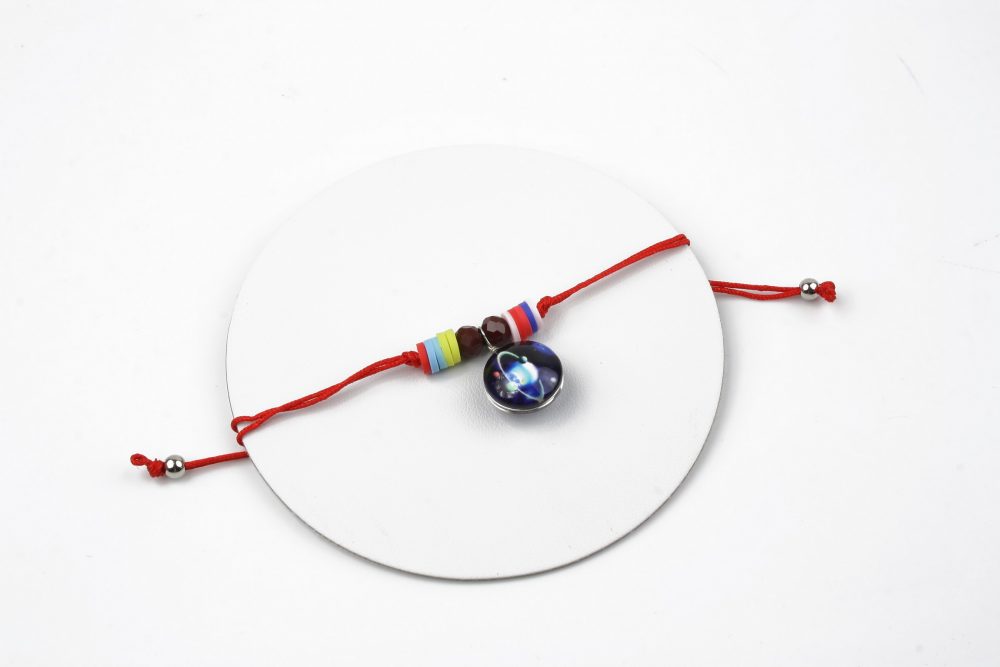 • Bratara este formata din snur textil rosu reglabil cu charm cabochon cosmos. Dimensiune charm de aprox. 13mm.