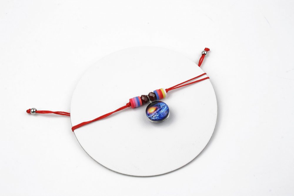 • Bratara este formata din snur textil rosu reglabil cu charm cabochon cosmos. Dimensiune charm de aprox. 13mm.
