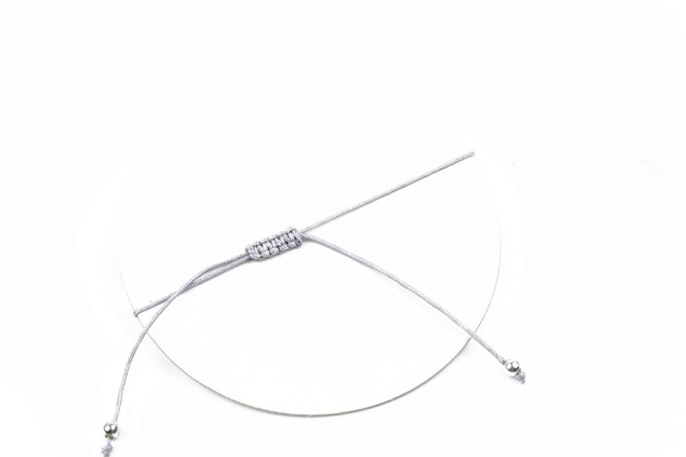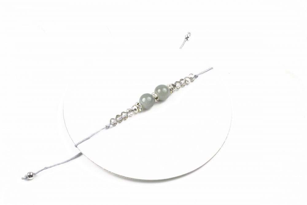 • Bratara este formata din snur textil reglabil cu margele si cristale gri.