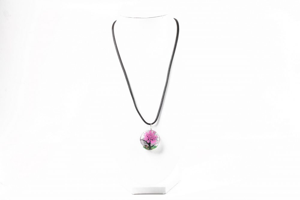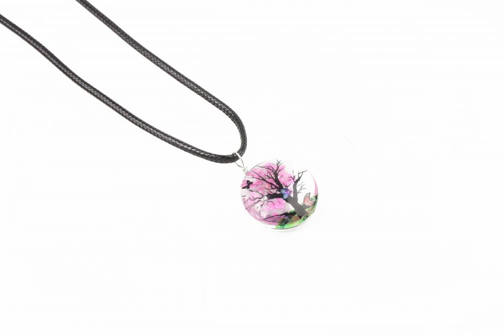 • Colierul este format din snur cerat negru grosime 2mm si pandantiv cabochon sticla model copacul vietii. Ambele fete au modele si pot fi usor diferite de la un produs la altul.