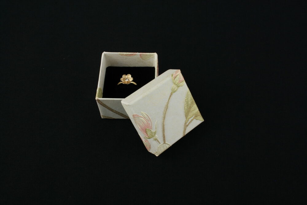 Adaugă un plus de rafinament fiecărui cadou cu această cutie elegantă de culoare alba cu model floral perfectă pentru inel sau cercei cu surub. Modelul cutiei este diferit de la o cutie la alta si se aleg aleatoriu in comenzi. Fabricată din material de calitate, cu interior moale, catifelat, această cutie pentru bijuterii este ideală pentru prezentarea elegantă a accesoriilor în magazin, dar și pentru oferirea cadourilor într-un mod memorabil.