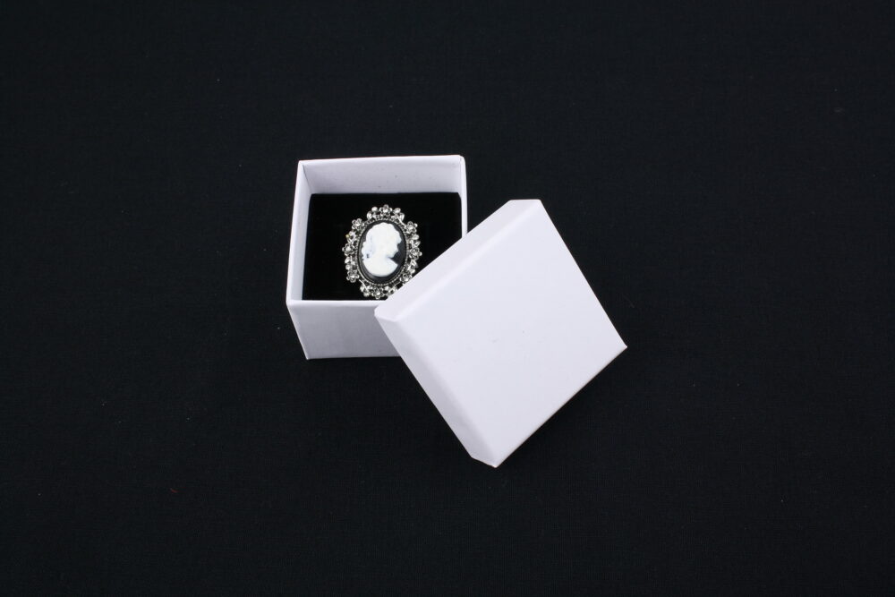 Cutie alba pentru inel/cercei cu surub – ambalaj elegant pentru bijuterii deosebite