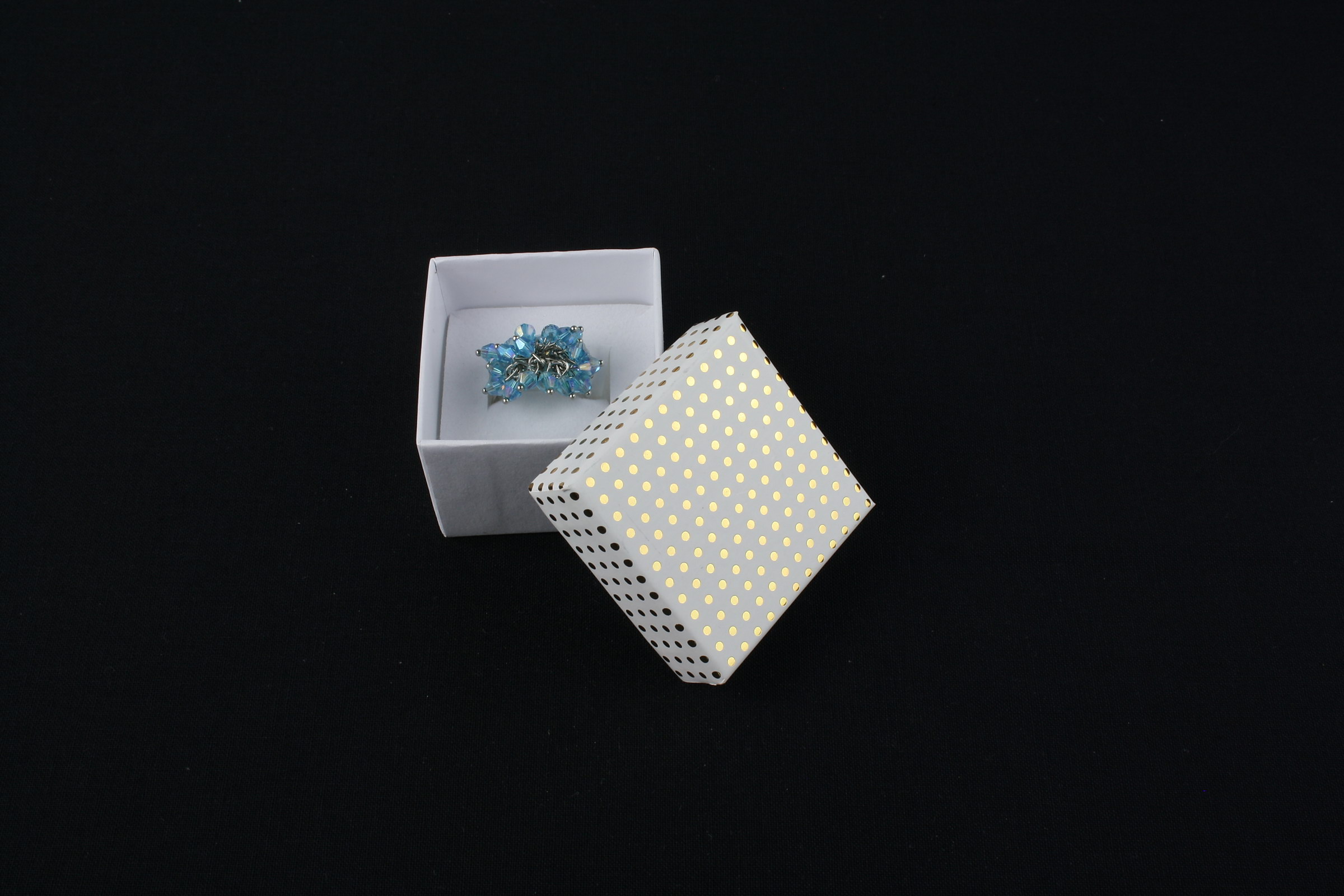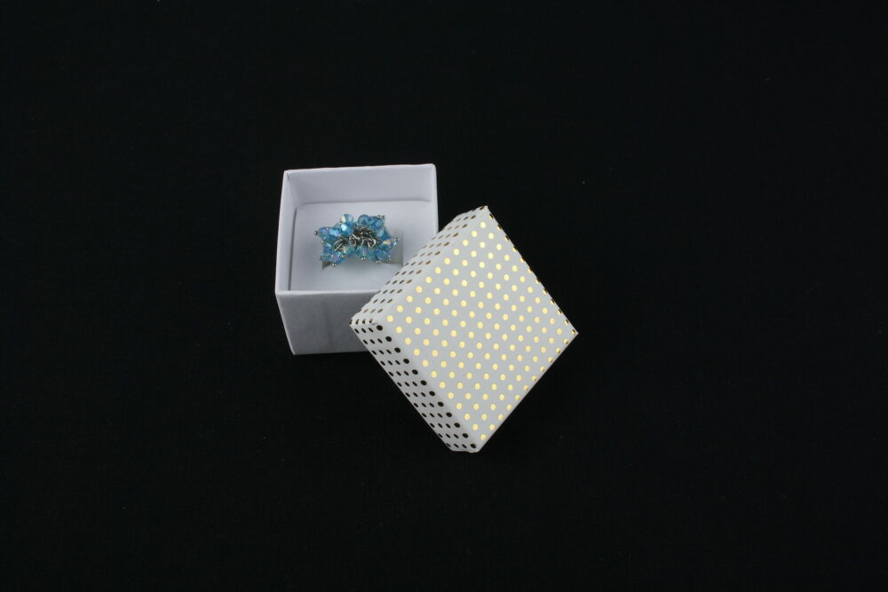 Cutie alba model buline aurii pentru inel/cercei cu surub – ambalaj elegant pentru bijuterii deosebite