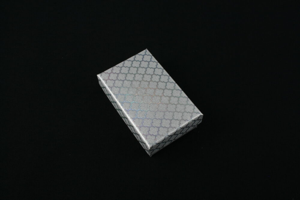Oferă un plus de eleganță și rafinament bijuteriilor tale cu această cutie argintie premium din carton durabil, special concepută pentru a păstra un set (colier, cercei și inel).