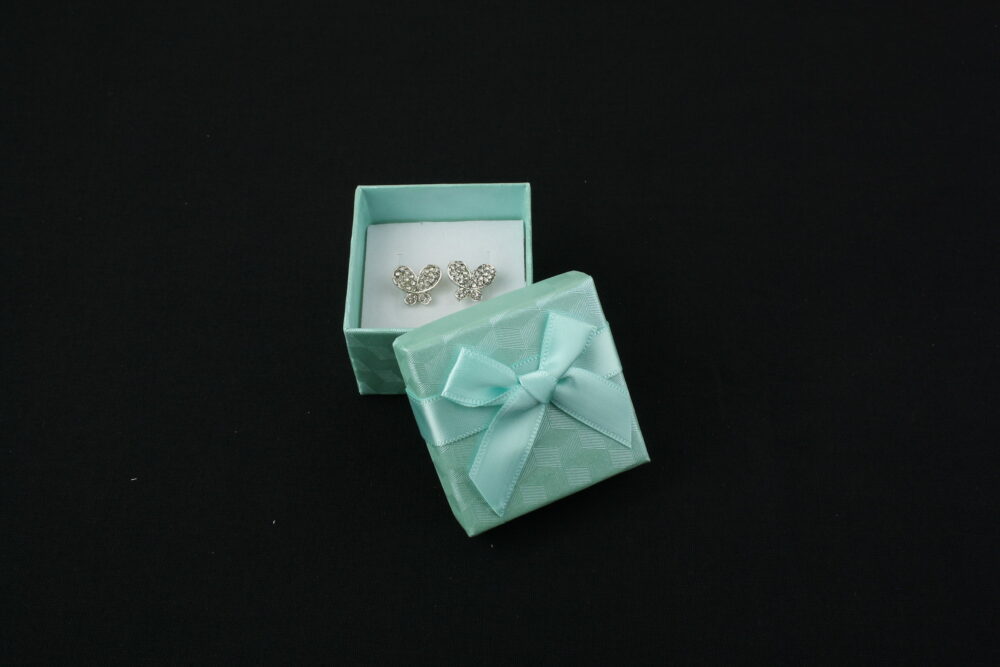 Cutie cadou bleu pentru inel/cercei 3,5×4,5×4,5cm