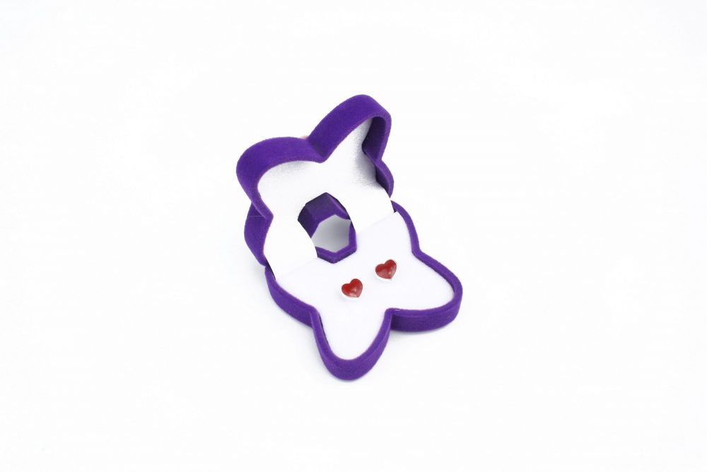 Cutie cadou catifea mov pentru cercei cu surub cu inaltimea de 2cm, latimea si lungimea de 5cm.