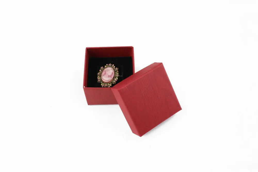 Adaugă un plus de rafinament fiecărui cadou cu această cutie elegantă de culoare grena perfectă pentru inel sau cercei cu surub. Fabricată din material de calitate, cu interior moale, catifelat, această cutie pentru bijuterii este ideală pentru prezentarea elegantă a accesoriilor în magazin, dar și pentru oferirea cadourilor într-un mod memorabil.