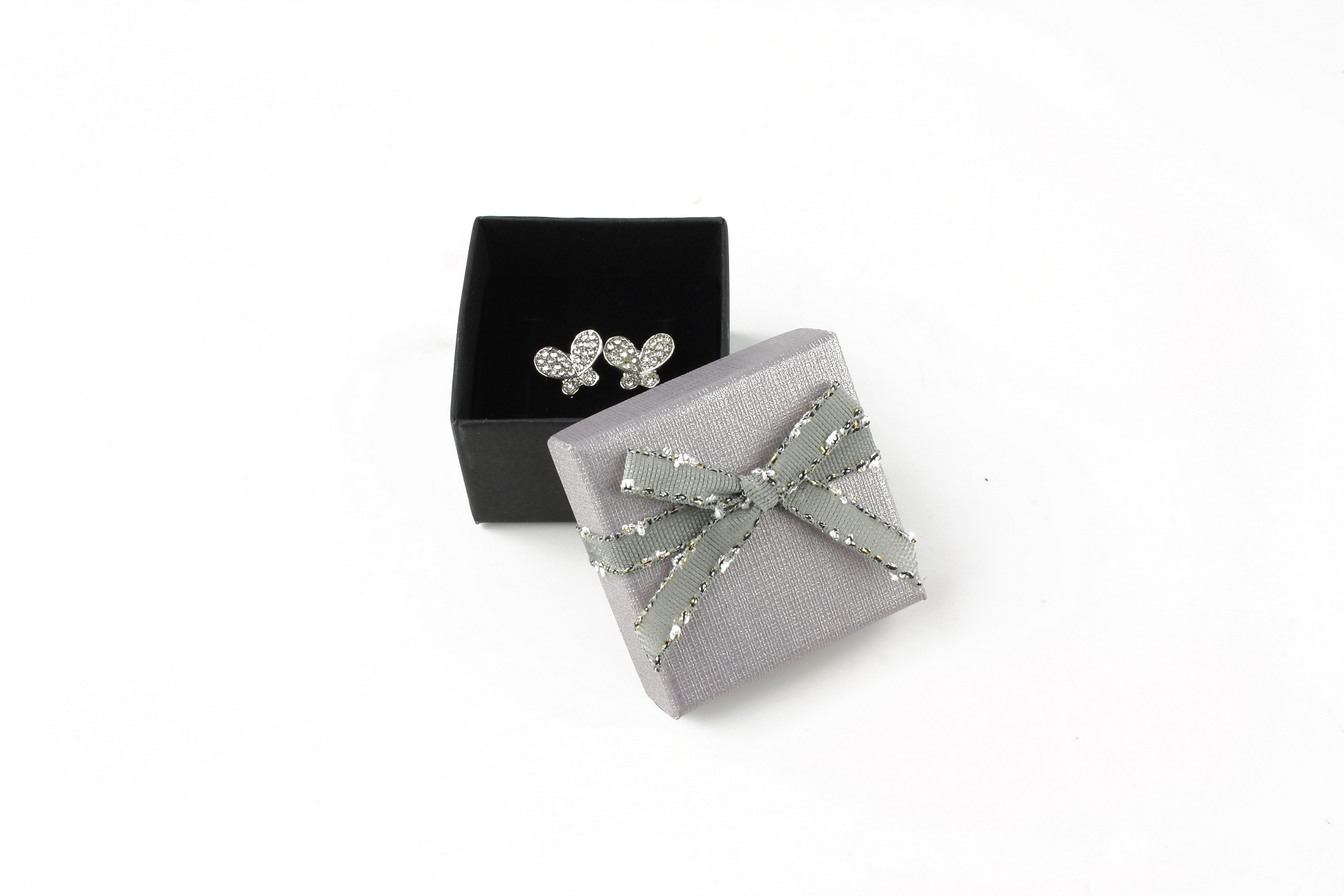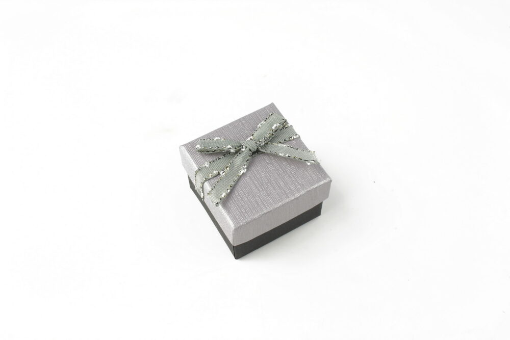 Cutie cadou gri pentru inel/cercei 3,5×4,5×4,5cm