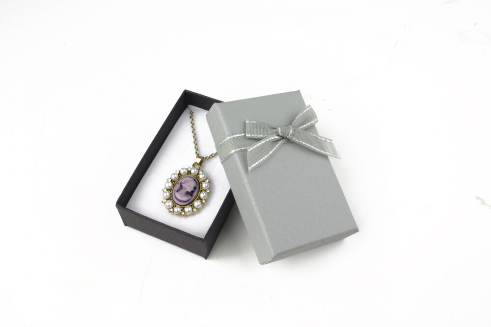 Adaugă o notă de eleganță fiecărui cadou cu această cutie de cadou gri din carton premium, special concepută pentru ambalarea și prezentarea bijuteriilor. Ideală pentru cercei, coliere și inele, cutia oferă un aspect rafinat și profesional, perfect pentru cadouri, magazine de bijuterii sau prezentări de produse handmade.