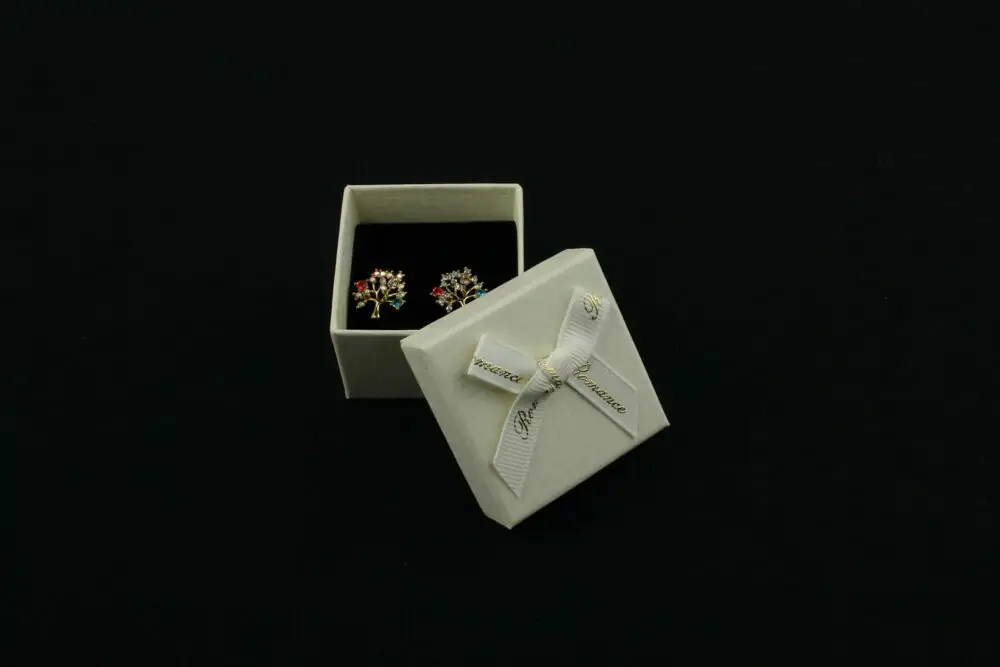 Cutie cadou ivory pentru inel/cercei 3,5×4,5×4,5cm