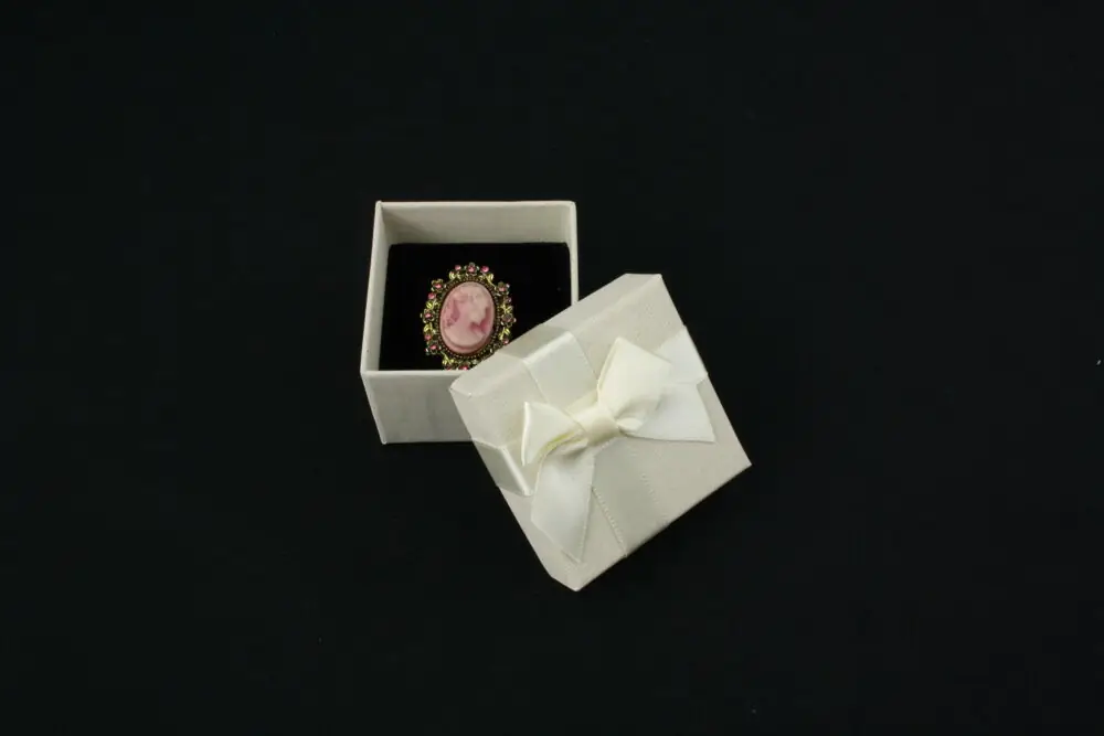 Adaugă un plus de rafinament fiecărui cadou cu această cutie elegantă de culoare ivory perfectă pentru inel sau cercei cu surub. Fabricată din material de calitate, cu interior moale, catifelat, această cutie pentru bijuterii este ideală pentru prezentarea elegantă a accesoriilor în magazin, dar și pentru oferirea cadourilor într-un mod memorabil.