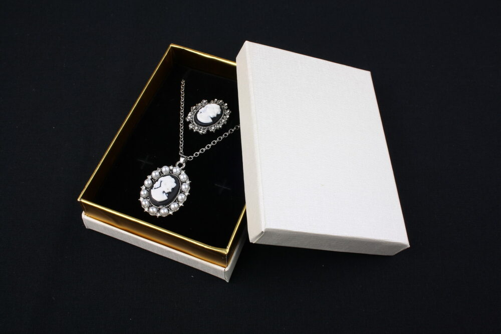 Adaugă o notă de eleganță fiecărui cadou cu această cutie de cadou ivory din carton premium, special concepută pentru ambalarea și prezentarea bijuteriilor. Ideală pentru cercei, coliere și inele, cutia oferă un aspect rafinat și profesional, perfect pentru cadouri, magazine de bijuterii sau prezentări de produse handmade.