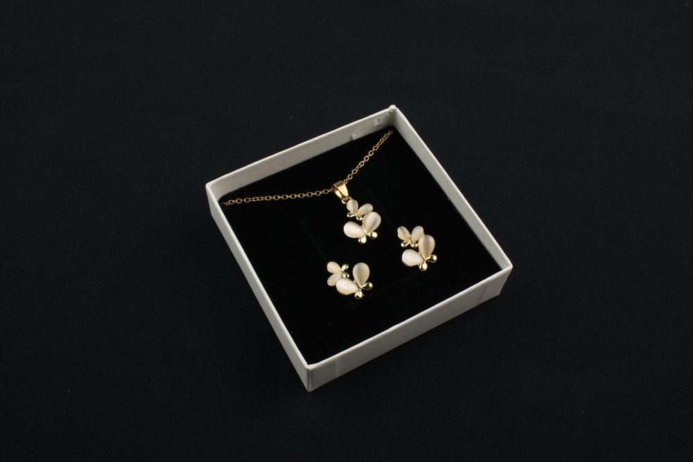 • Cutie cadou ivory pentru set (cercei, colier si inel) cu inaltimea de 2,5cm, latimea si lungimea de 8,5cm.