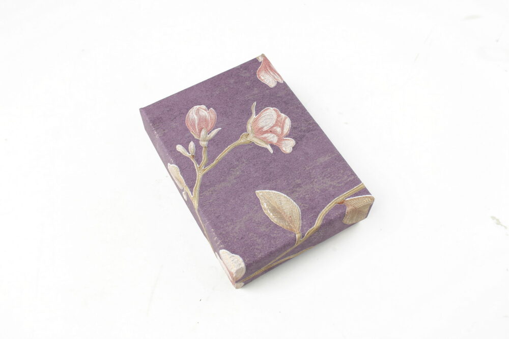 Fabricată din carton durabil și rezistent, cutia are un design modern și delicat, cu o nuanță mov cu model floral ce inspiră finețe și rafinament. Interiorul moale și compartimentat protejează bijuteriile împotriva zgârieturilor, menținându-le perfect așezate și evidențiind frumusețea fiecărui detaliu.