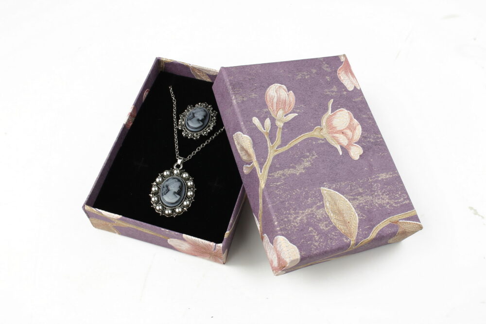 Modelul cutiei este diferit de la o cutie la alta si se aleg aleatoriu in comenzi. Adaugă o notă de eleganță fiecărui cadou cu această cutie de cadou model floral din carton premium, special concepută pentru ambalarea și prezentarea bijuteriilor. Ideală pentru cercei, coliere și inele, cutia oferă un aspect rafinat și profesional, perfect pentru cadouri, magazine de bijuterii sau prezentări de produse handmade.
