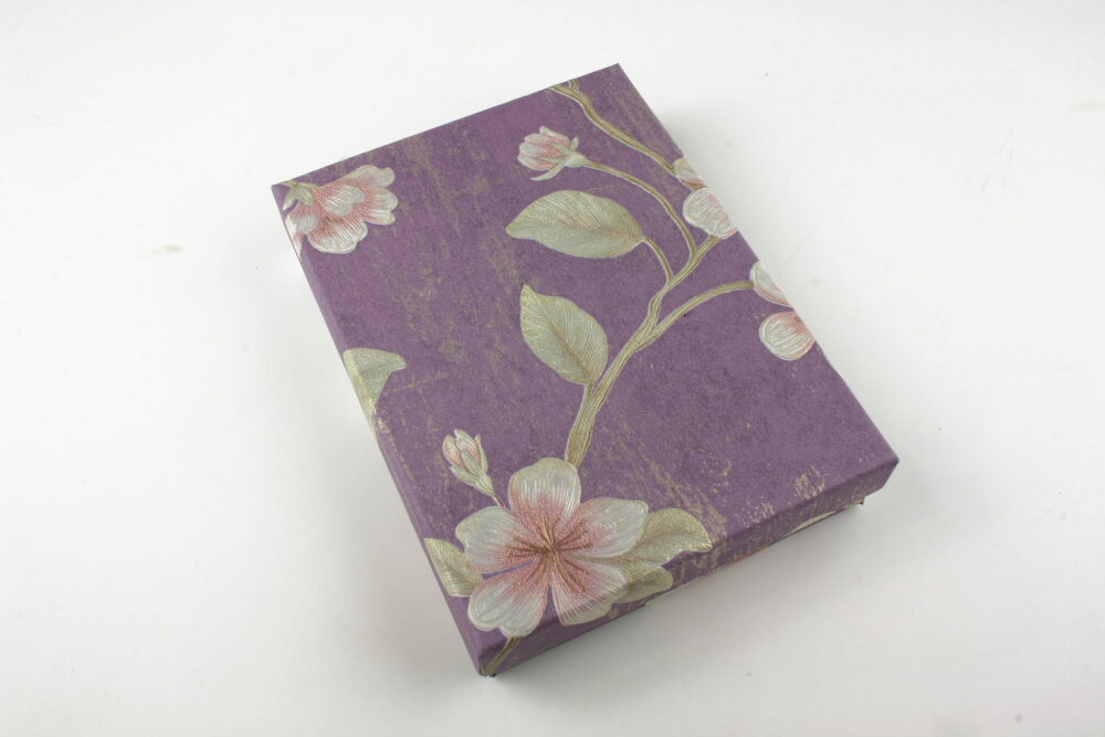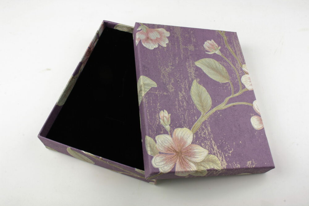 Cutie cadou mov model floral pentru set (cercei, colier si inel)