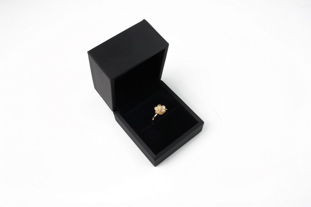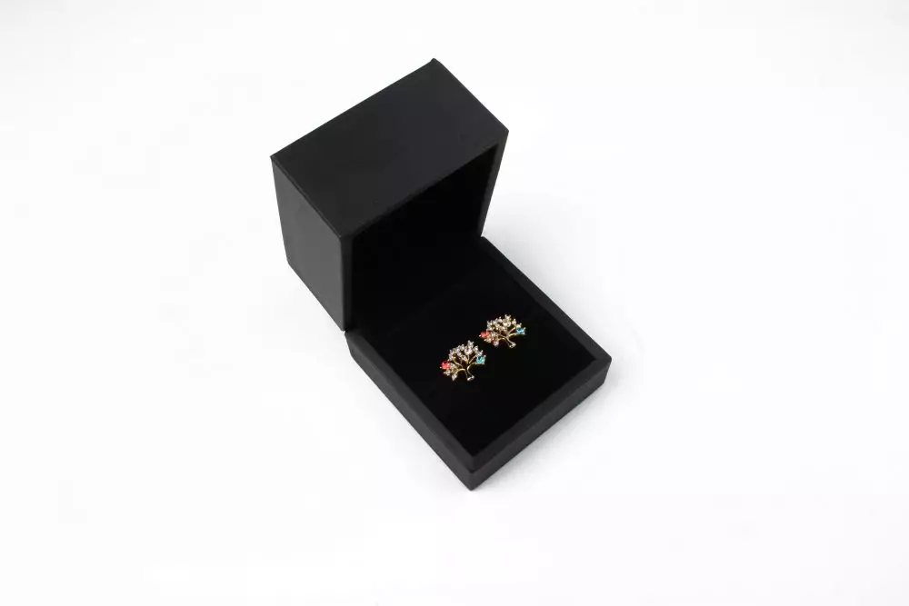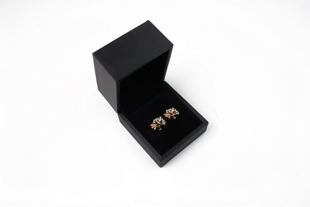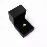 • Cutie cadou neagra cu aspect satinat pentru inel/cercei cu inaltimea de 5cm, latimea de 6cm si lungimea de 6,5cm.