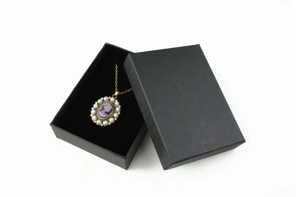 Fabricată din carton durabil și rezistent, cutia are un design modern și delicat, cu o nuanță neagra ce inspiră finețe și rafinament. Interiorul moale și compartimentat protejează bijuteriile împotriva zgârieturilor, menținându-le perfect așezate și evidențiind frumusețea fiecărui detaliu.