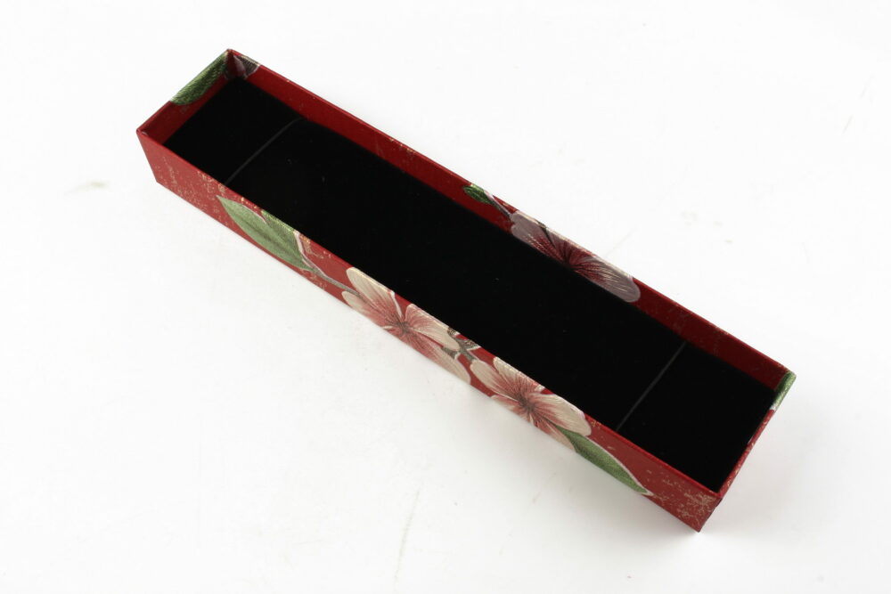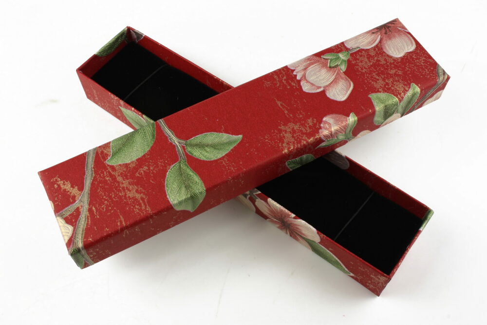 Adaugă un plus de eleganță și valoare bijuteriilor tale cu această cutie premium de culoare rosie cu model floral, special concepută pentru coliere și brățări. Modelul cutiei este diferit de la o cutie la alta si se aleg aleatoriu in comenzi. Fabricată din materiale de calitate, cu un design rafinat și un interior moale, această cutie oferă atât protecție, cât și un aspect sofisticat, ideal pentru cadouri sau prezentarea profesională a bijuteriilor.