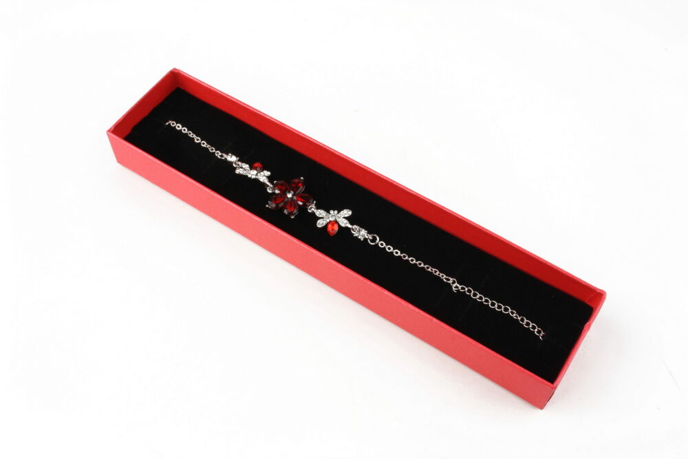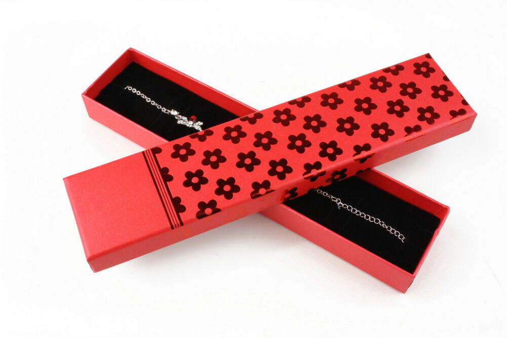 Cutie cadou rosie model floral pentru colier, bratara sau ceas
