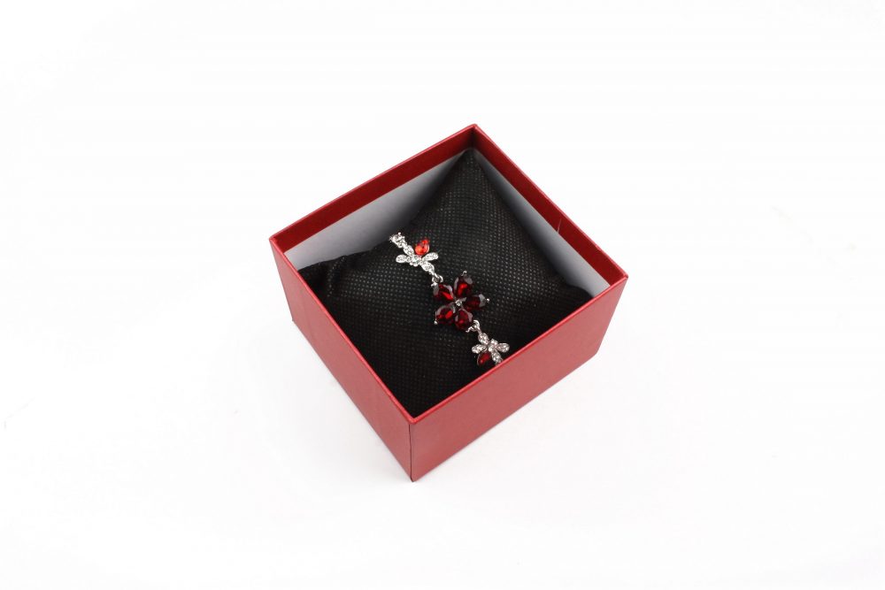 • Cutie cadou rosie pentru bijuterii cu pernita cu inaltimea de 5,5cm, latimea de 8cm si lungimea de 8,5cm.