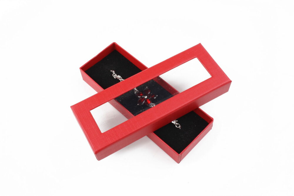 Adaugă un plus de eleganță și valoare bijuteriilor tale cu această cutie cu capac transparent de culoare rosie, special concepută pentru brățări. Fabricată din materiale de calitate, cu un design rafinat și un interior moale, această cutie oferă atât protecție, cât și un aspect sofisticat, ideal pentru cadouri sau prezentarea profesională a bijuteriilor.