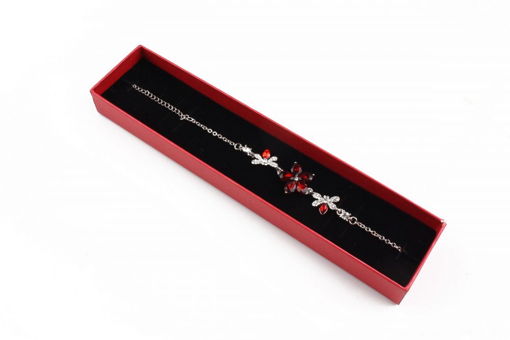 • Cutie cadou rosie pentru colier, bratara sau ceas cu inaltimea de 2cm, latimea de 4cm si lungime 20cm.