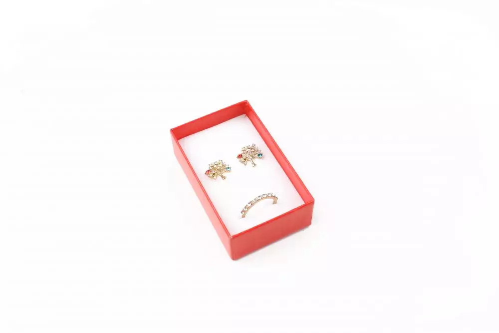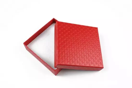 • Cutie cadou rosie pentru set (cercei, colier si inel) cu inaltimea de 2,5cm, latimea de 5cm si lungimea de 8cm.