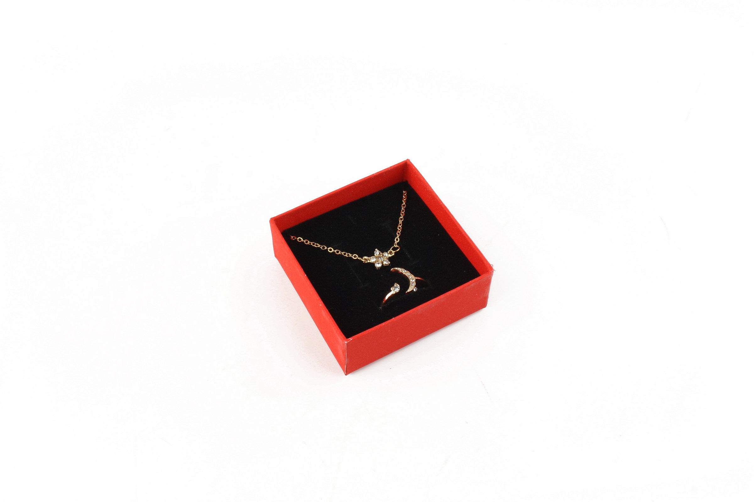 Oferă un plus de eleganță și rafinament bijuteriilor tale cu această cutie rosie premium din carton durabil, special concepută pentru a păstra un set (colier, cercei și inel).
