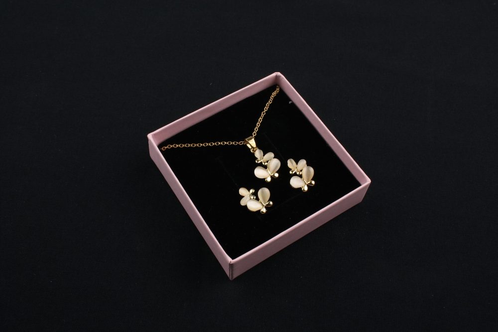 • Cutie cadou roz pentru set (cercei, colier si inel) cu inaltimea de 2,5cm, latimea si lungimea de 8,5cm.