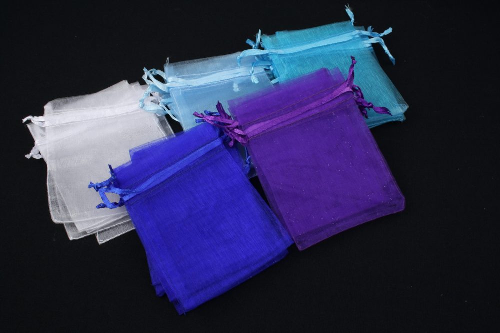 Set de 100 bucati saculeti organza in 5 culori diferite, setul va include cate 20 bucati din fiecare culoare si va veni exact ca in pozele de prezentare. Culori incluse in set: alb, bleu, albastru deschis, albastru cobalt si mov indigo. Dimensiunea utila a saculetilor este de 6,5cm latime si 7cm lungime.