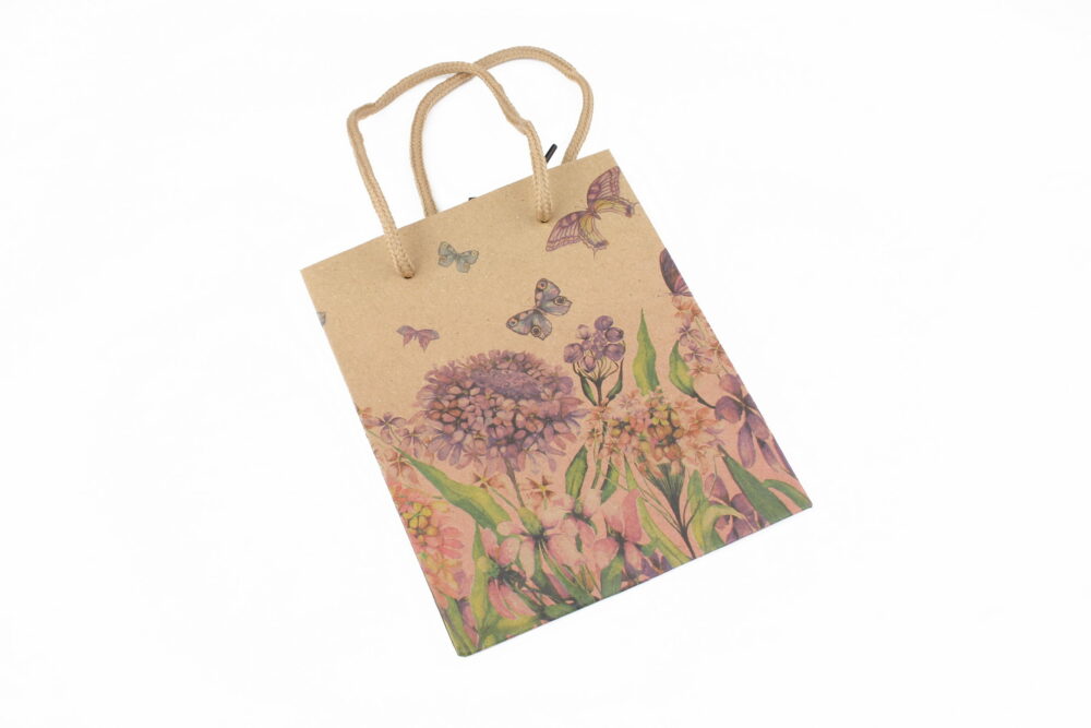 • Punga cadou este realizata din hartie craft si are manere din snur.