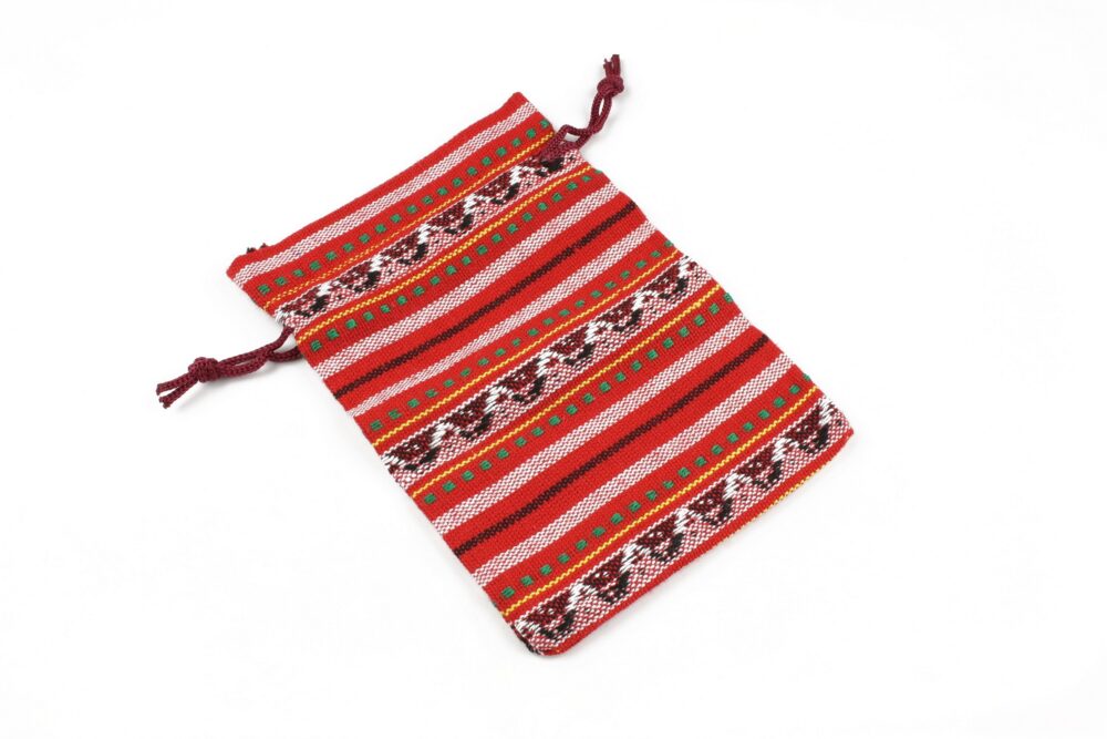 Adaugă un plus de autenticitate și rafinament cadourilor tale cu acest săculeț model etnic! Fabricat din material textil de calitate, cu motive tradiționale, acest ambalaj este perfect pentru ocazii speciale, evenimente sau pentru a oferi un cadou deosebit.