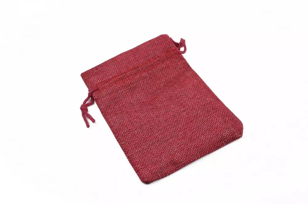 Saculet din panza de sac grena cu latimea de 9,5cm si lungimea de 13,5cm.