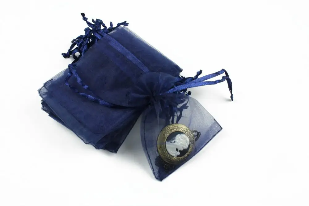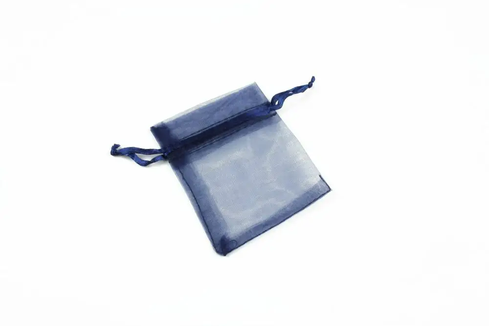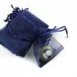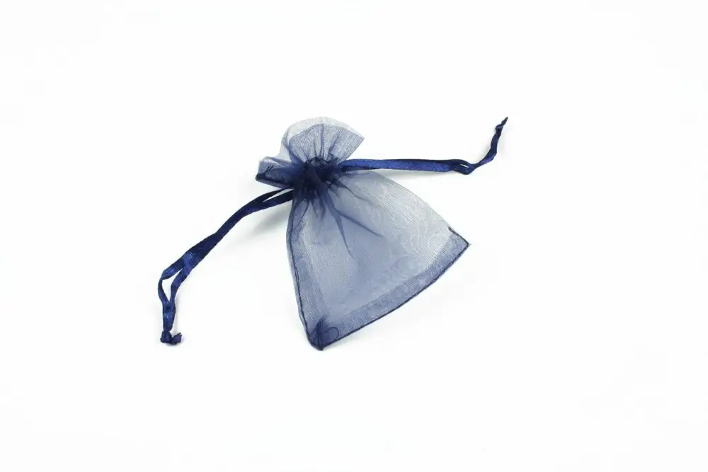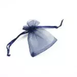 Saculet organza albastru marin cu latimea de 6,5cm si lungimea totala de 8cm.