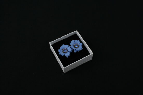 Cutie cadou bleu model floral pentru set (cercei, colier si inel)