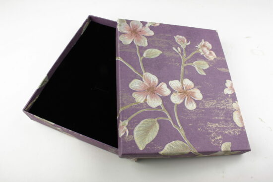 Cutie cadou mov model floral pentru colier, bratara sau ceas