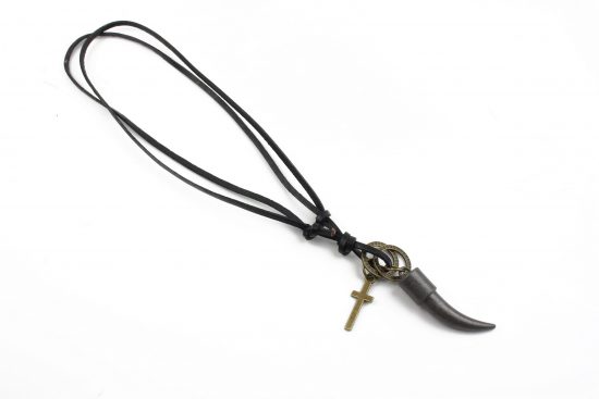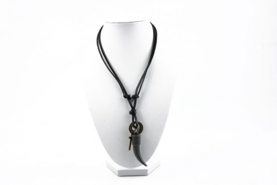 Colier barbati din piele si pandantiv metalic