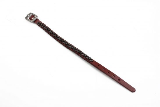 Bratara barbati din piele grena si elemente metalice