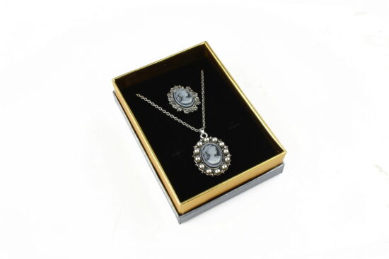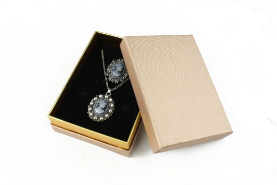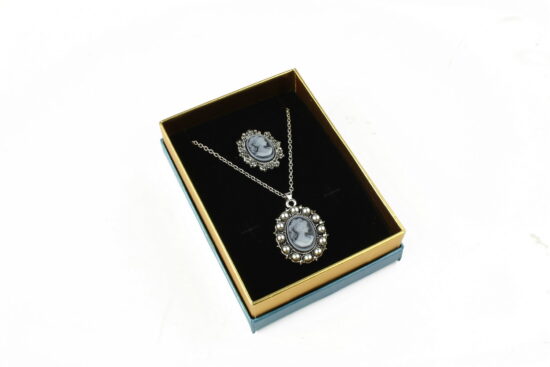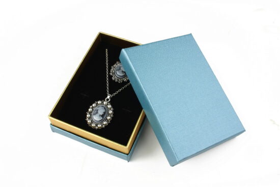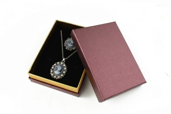 Cutie cadou gri pentru set (cercei, colier si inel)