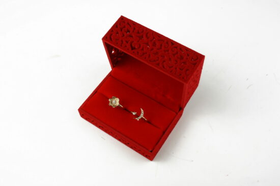Cutie cadou catifea rosie pentru verighete/inele 3×4,7×4,2cm