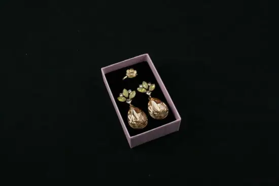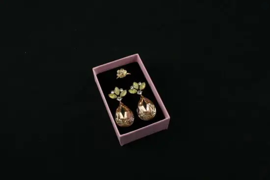 Cutie cadou verde pentru set (cercei, colier si inel)