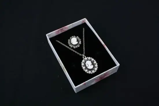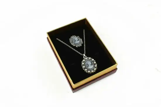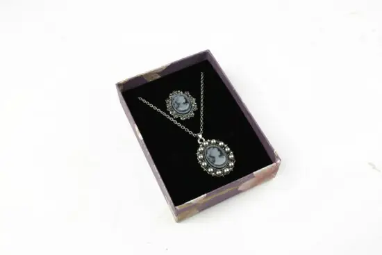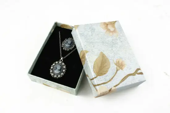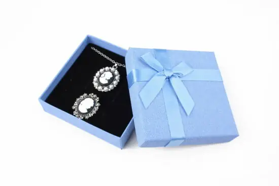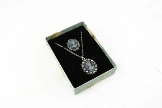 Cutie cadou gri pentru set (cercei, colier si inel)