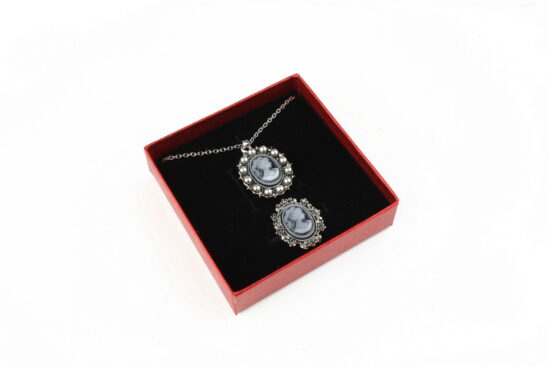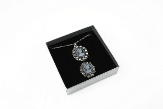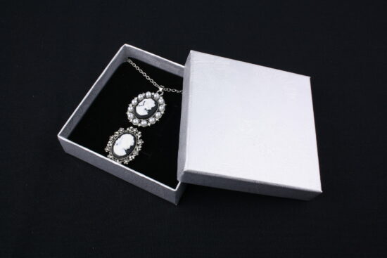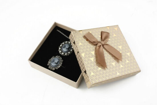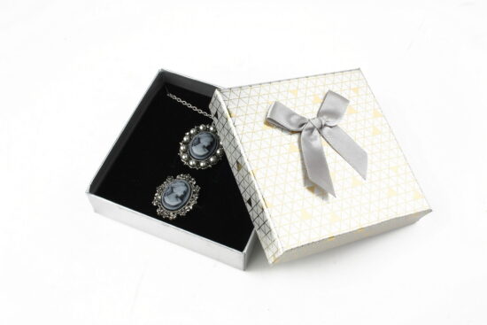 Cutie cadou gri pentru set (cercei, colier si inel)