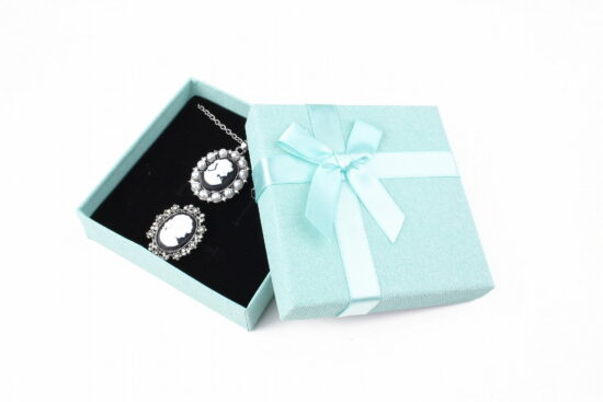 Cutie cadou turcoaz pentru set (cercei, colier si inel)