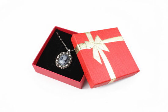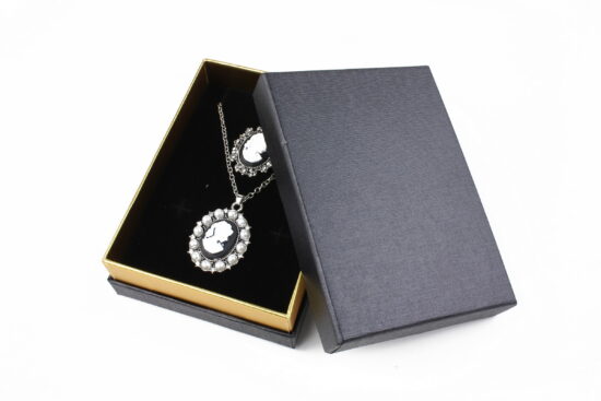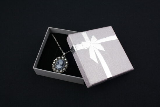 Cutie cadou gri pentru set (cercei, colier si inel)
