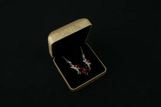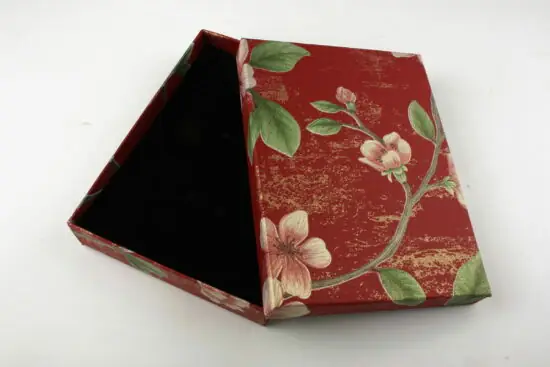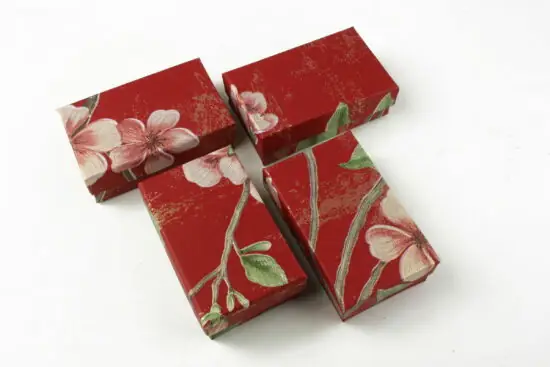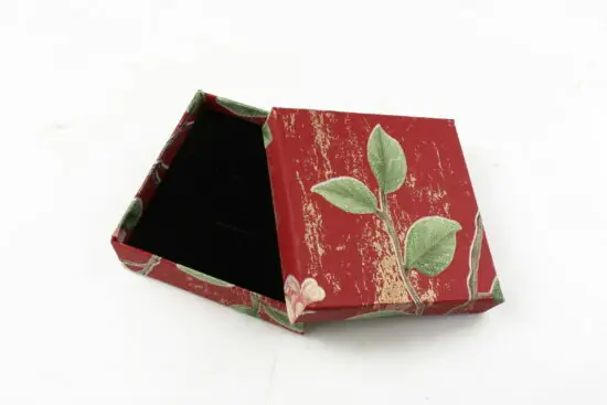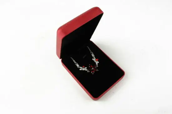Cutie cadou rosie model floral pentru set (cercei, colier si inel)
