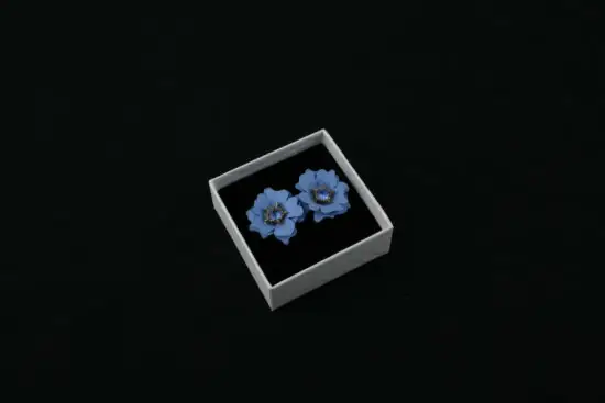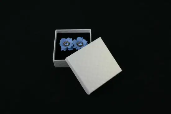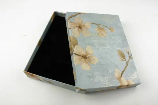 Cutie cadou bleu model floral pentru set (cercei, colier si inel)