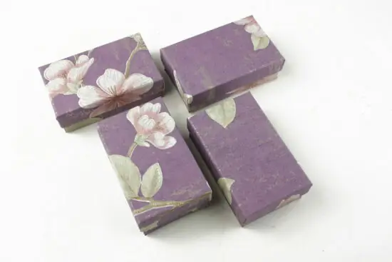 Cutie cadou mov model floral pentru set (cercei, colier si inel)